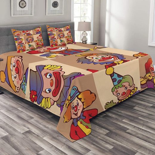 Be the first to review “Lunarable Circus Bedspread, Funny Clowns Illustration Print Entertaining Childhood Joke Enjoyment Theme, Decorative Quilted 3 Piece Coverlet Set with 2 Pillow Shams, King Size, Coral Red” Cancel reply