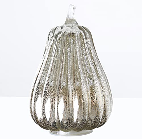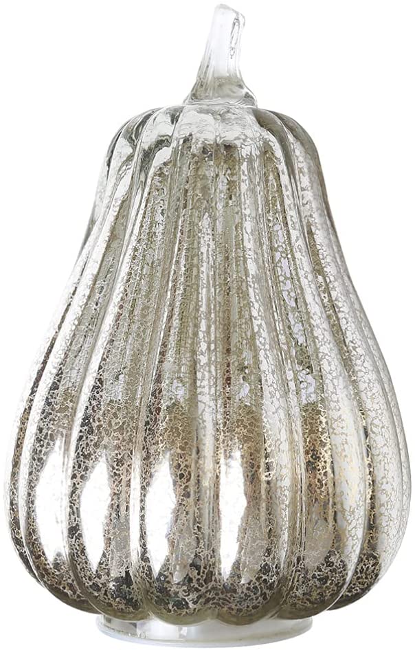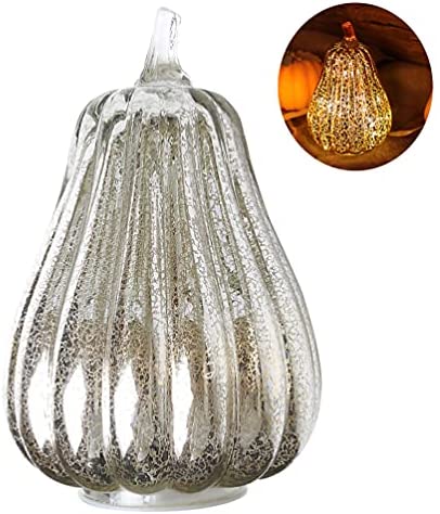 Lurrose Silver Halloween Pumpkin Lamp Mercury Glass LED Pumpkin Light Fall Decor Glass Pumpkin for Home Outdoor Decoration