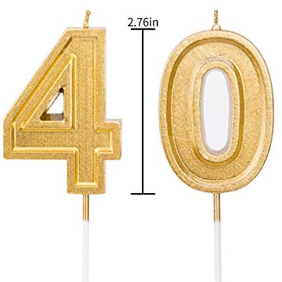 LUTER 2.76 Inches Large Birthday Candles Gold Glitter Birthday Cake Candles Number Candles Cake Topper Decoration for Wedding Party Kids Adults, Number 40