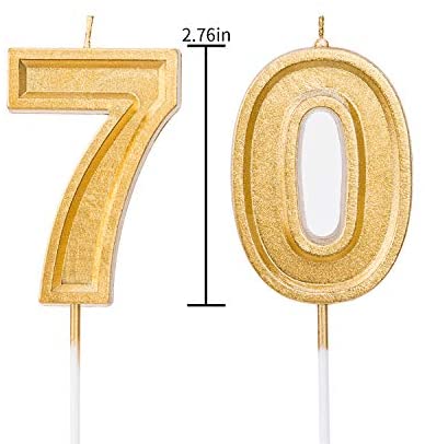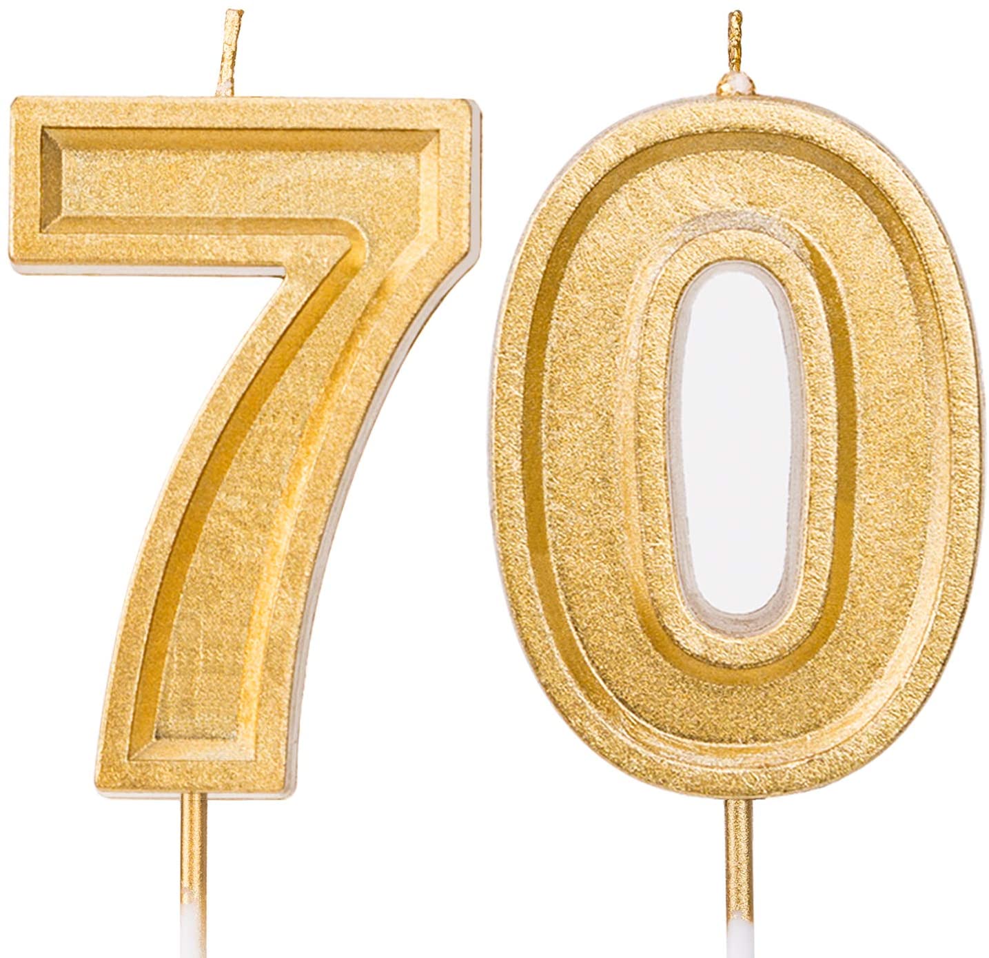 LUTER 2.76 Inches Large Birthday Candles Gold Glitter Birthday Cake Candles Number Candles Cake Topper Decoration for Wedding Party Kids Adults, Number 70