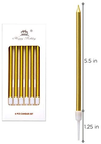 LUTER Metallic Birthday Candles in Holders Tall Birthday Cake Candles Long Thin Cupcake Candles for Birthday Wedding Party Decoration(24 Pieces) (Gold)