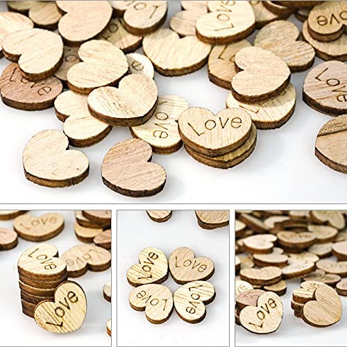 Lystaii 400pcs Rustic Wooden Love Heart Wedding Table Scatter Decoration Valentinesu2019 Day Engraved Natural Wood Heart Table Confetti Childrens DIY for Crafts Wedding Engagement Baby Shower Party
