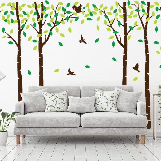 MAFENT Giant Family Tree Wall Decals Forest Birch Tree Wall Stickers Birds Wall Art for Kids Room Nursery Bedroom Living Room Decoration(Dark Brown and Green)