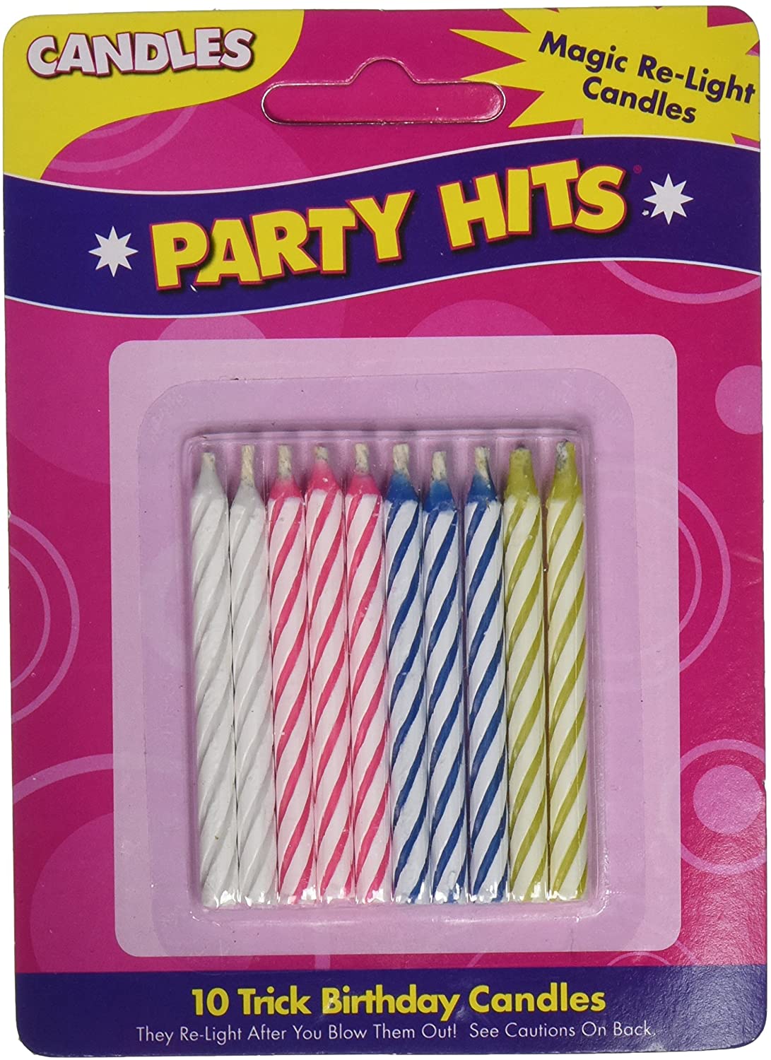 RIN Color Red,navy,white,purple Material Wax Occasion Birthday Size 3 Item Weight 0.02 Pounds Item Dimensions LxWxH 4.2 x 0.2 x 6 inches Pattern Assorted Style Magic Relight Item Display Dimensions 0.2 x 6 inches