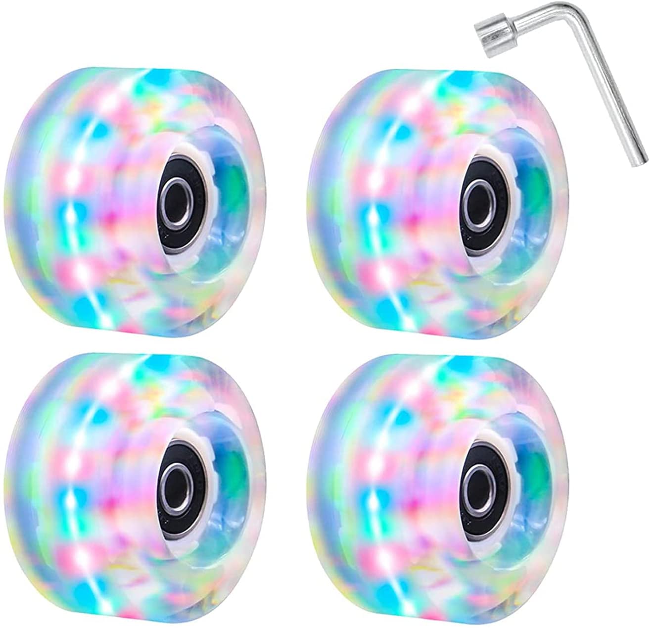 Magicorange 4 Pack Roller Skate Wheels with Bearings Installed Light Up Luminous Quad Wheels for Indoor or Outdoor Double Row Skating and Skateboard 32mm x 58mm 82A
