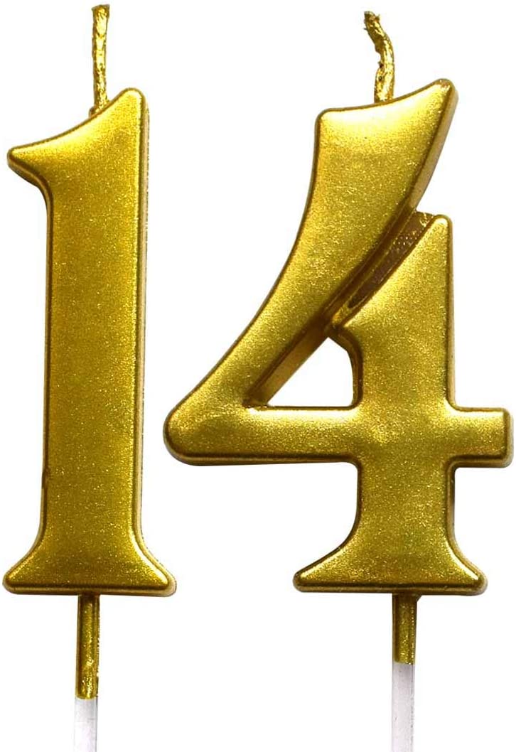 MAGJUCHE Gold 14th Birthday Numeral Candle, Number 14 Cake Topper Candles Party Decoration for Girl Or Boy