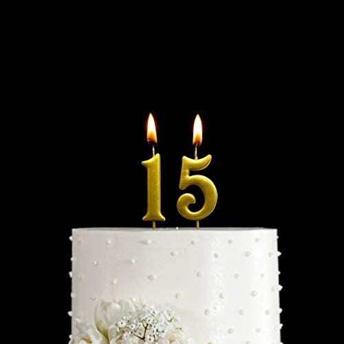 MAGJUCHE Gold 15th Birthday Numeral Candle, Number 15 Cake Topper Candles Party Decoration for Girl Or Boy