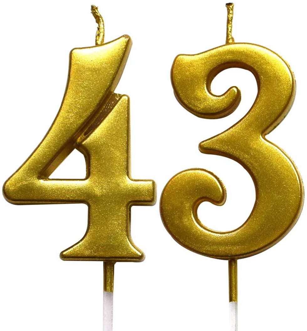 MAGJUCHE Gold 43nd Birthday Numeral Candle, Number 43 Cake Topper Candles Party Decoration for Women or Men