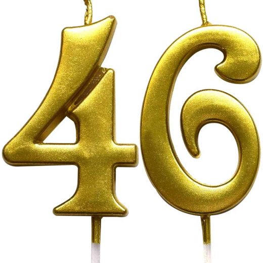 MAGJUCHE Gold 46th Birthday Numeral Candle, Number 46 Cake Topper Candles Party Decoration for Women or Men