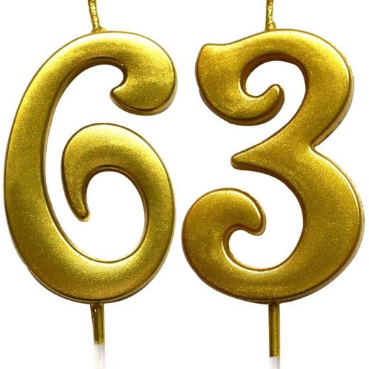 MAGJUCHE Gold 63rd Birthday Numeral Candle, Number 63 Cake Topper Candles Party Decoration for Women or Men