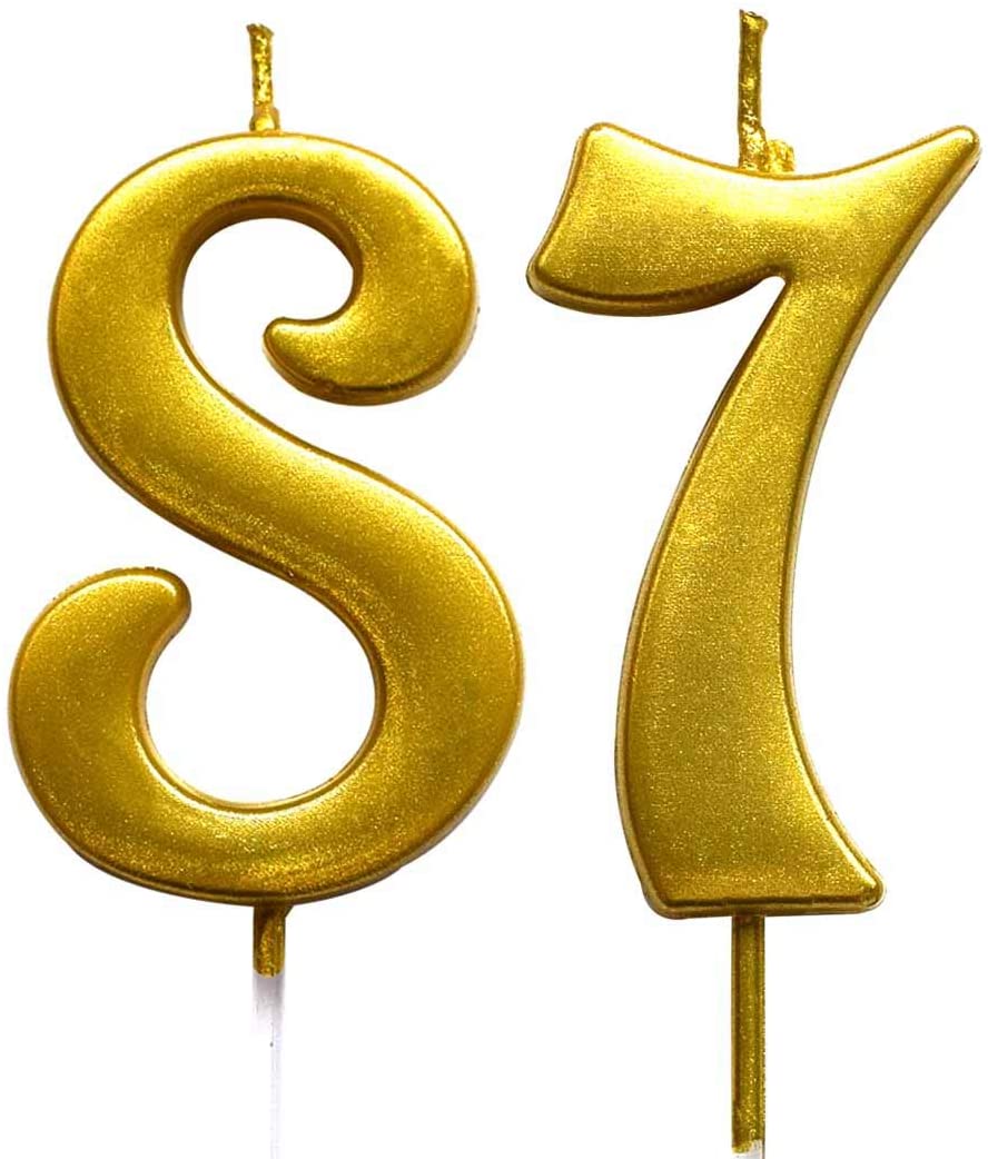 MAGJUCHE Gold 87th Birthday Numeral Candle, Number 87 Cake Topper Candles Party Decoration for Women or Men