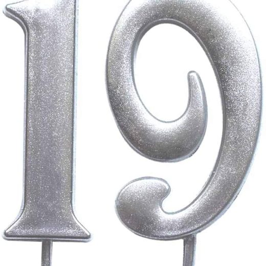 MAGJUCHE Silver 19th Birthday Numeral Candle, Number 19 Cake Topper Candles Party Decoration for Girl Or Boy