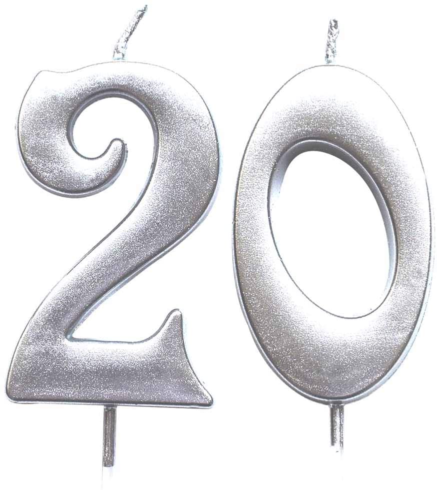 MAGJUCHE Silver 20th Birthday Numeral Candle, Number 20 Cake Topper Candles Party Decoration for Girl Or Boy