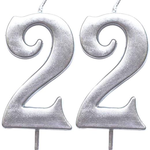 MAGJUCHE Silver 22nd Birthday Numeral Candle, Number 22 Cake Topper Candles Party Decoration for Girl Or Boy