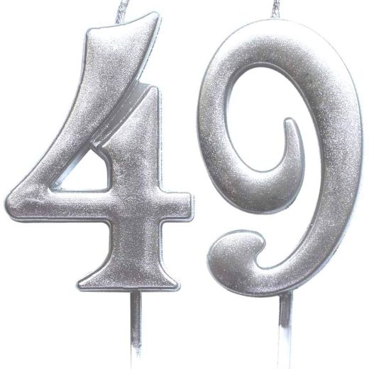 MAGJUCHE Silver 49th Birthday Numeral Candle, Number 49 Cake Topper Candles Party Decoration for Women or Men