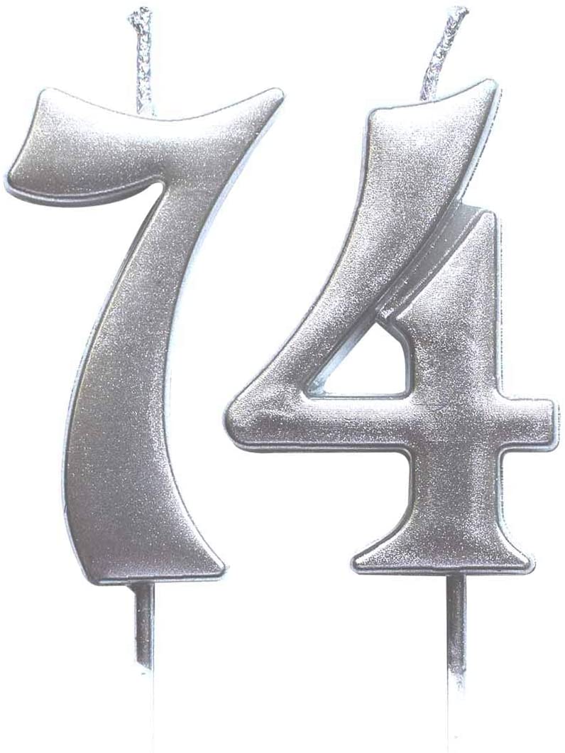 MAGJUCHE Silver 74th Birthday Numeral Candle, Number 74 Cake Topper Candles Party Decoration for Women or Men