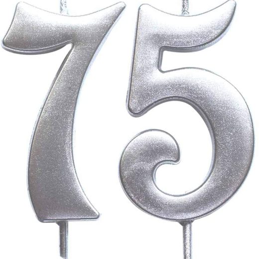 MAGJUCHE Silver 75th Birthday Numeral Candle, Number 75 Cake Topper Candles Party Decoration for Women or Men