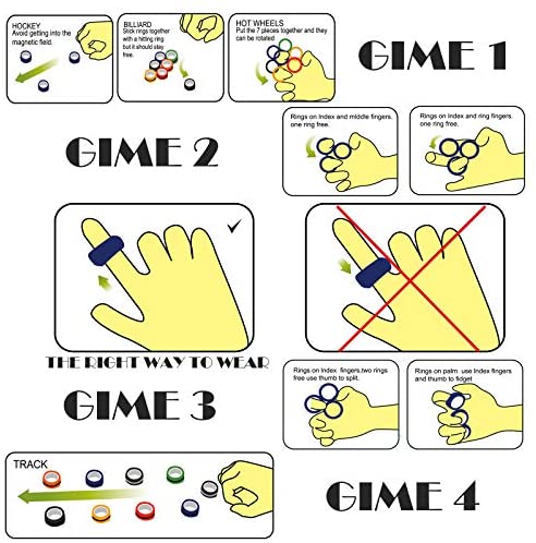 About Fidget Rings for AnxietyPackage Includes: 3PCS | Material: Environmentally friendly ABS plastic/Magnet N40 | Diameter ring size:1.2inch | Inner ring size:0.7inch | Weight of each fidget magnets ring:10g | Colour:Three-color Fluorescent color | Magnet performance:With super magnetic adsorption Best Anti-Stress StressQuickly focus your attention and release stress through a simple rotation game, when you feel anxious, stressed and fidget.Curb unwanted habits such as nail biting and smoking with cool fidget toy.Let you enjoying a good time during alone Safe and MultifunctionModeling: Smooth Surface & Round Corner, protects your fingers from scratching | Craftsmanship: High-quality design, if drop the Spinners on the ground uncarefully, don’t worry about breaking | Our special design: fidget rings rotate smoother, which can rotate many times A Fidget Toy for all OccasionsThese fidget magnets are great for travel, for work, for home or for the pencil case. They are light weight and pocket sized, Not only a fun enjoyable toy but also can be used as a ring or ornament Satisfactory ServiceWe will offers 60 days unconditional money back guarantee and return and replacement warranty according to the customer service.If you have any questions, please feel free to contact our customer service,we will always be here to provide you with 24 hours