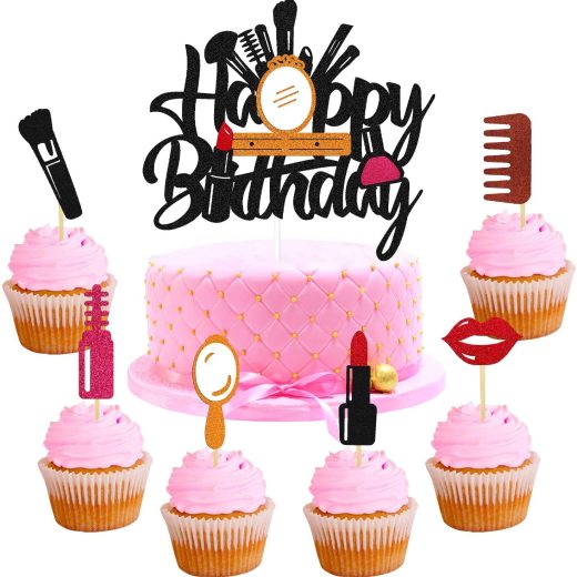 If you like to make a cake for a makeup themed birthday party, this glitter makeup theme birthday cake topper will be a good choice. Its shining an…