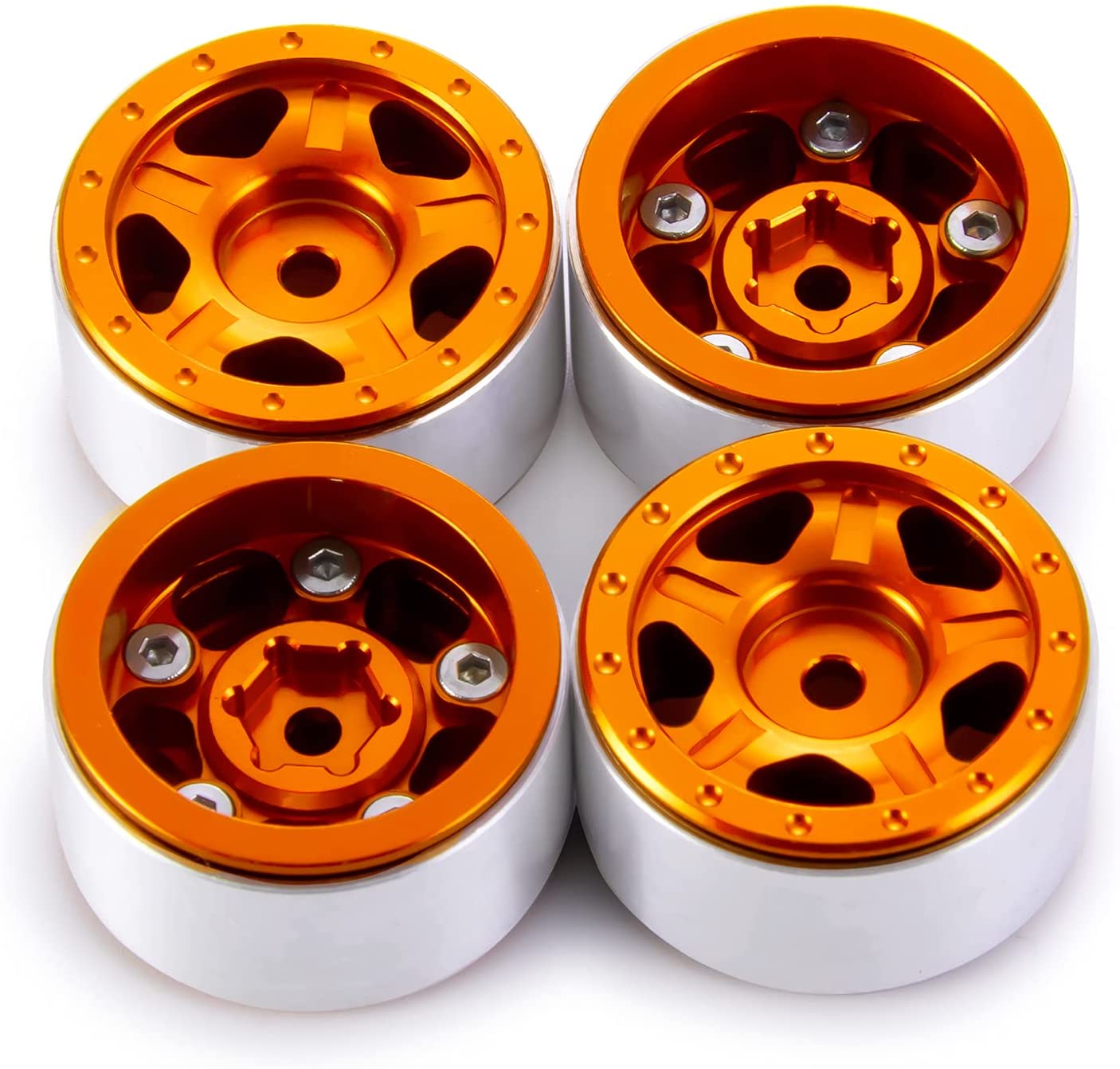 Maleonn 4PCS 1.0 Beadlock Wheels for 1/24 RC Crawler Car Axial SCX24 Wheels AXI90081 AXI00001 AXI00002 AXI00005 SCX24 Upgrades Wheel Hub Set (Orange)