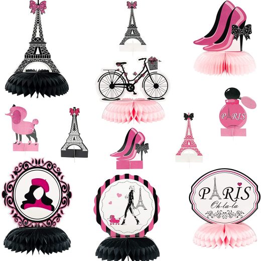 MALLMALL6 12Pcs Paris Honeycombs Centerpieces Party in Paris Party Supplies Birthday Baby Shower Decorations Girls Dream Paris Themed Photo Booth Romantic Eiffel Tower Pink Table Topper for Home