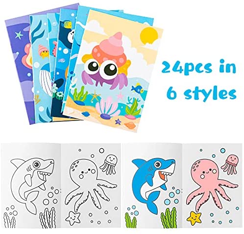 MALLMALL6 24Pcs Ocean Coloring Books Under The Sea Including Mermaid Shark Octopus Jellyfish DIY Art Drawing Pattern Birthday Party Favors Gifts Home School Classroom Activity Supply for Kids Age 4-8