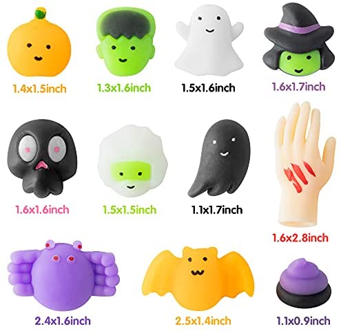 Halloween Themed design – Halloween squeeze toys are designed with Halloween theme elements like pumpkin, cute witch and scary skull, which can create the funny atmosphere for Halloween party. Value pack – Package includes 28Pcs Halloween-themed Mochi squeeze Toys with various of styles, kids will enjoy their Happy Halloween party with this special toys set. With the soft feeling, squeeze toys helps to relieve stress and increase hands blood circulation. Safe material – Made of environmental and non-toxic soft silicone with soft touching feeling, all materials are non-toxic and no smell.The Halloween theme mochi squeeze are supple and safe for kids and adults, which suit for stress relief. Easy to clean – If the Halloween mochi squeeze toys get dirty, don’t worry about it. They are super easy to clean with warm soap water and then will be a totally new one. After washing, the expression of toys won’t disappear. Halloween party favors – Mochi squeeze toys are suitable for Halloween themed party, with 28 unique styles to be the most adorable toys for kids to have fun with their friends. It also can be used birthday gifts, goodie bag fillers, Halloween party favors supplies, Halloween toys for toddlers boys girls.