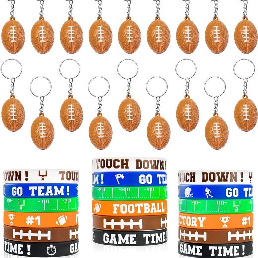 MALLMALL6 36Pcs Football Silicone Bracelets and Keychains Kit Sport Game Time Motivational Wristbands Rubber Key chain Unisex Birthday Party Favors School Carnival Reward for Teen Award GiftFillers