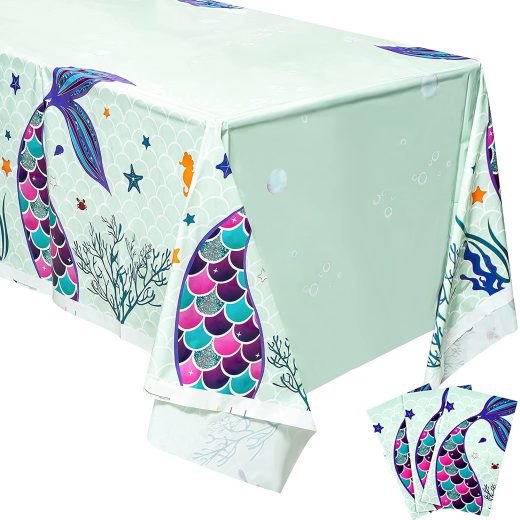 MALLMALL6 3Pcs Mermaid Table Cover Set Birthday Party Supply Waterproof Fairy Tale Theme Decorate Tablecloth Large Plastic Rectangular Mermaids Tai…