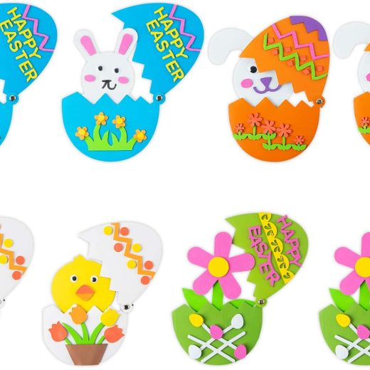 MALLMALL6 8Pcs Easter Egg DIY EVA Art Craft Kit with Peace Chicks Happy Rabbits Beautiful Flower Hope Bunny Out of the Eggshells Kids Favor Springtime Party Supplies Holiday Family Activities Gift Set