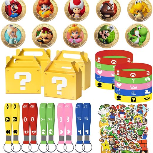 Are you preparing for the themed party and looking for right favors to enrich it This is your best choice. Every child will love the party favors, they can use the favors on the party and also be pleased to own them in daily life. PACKAGE CONTENTS 10 x Bracelets 10 x Key chains 10 x Button Pins 50 x Stickers Attention: Children under 3 years old should be used under the care of their guardian.