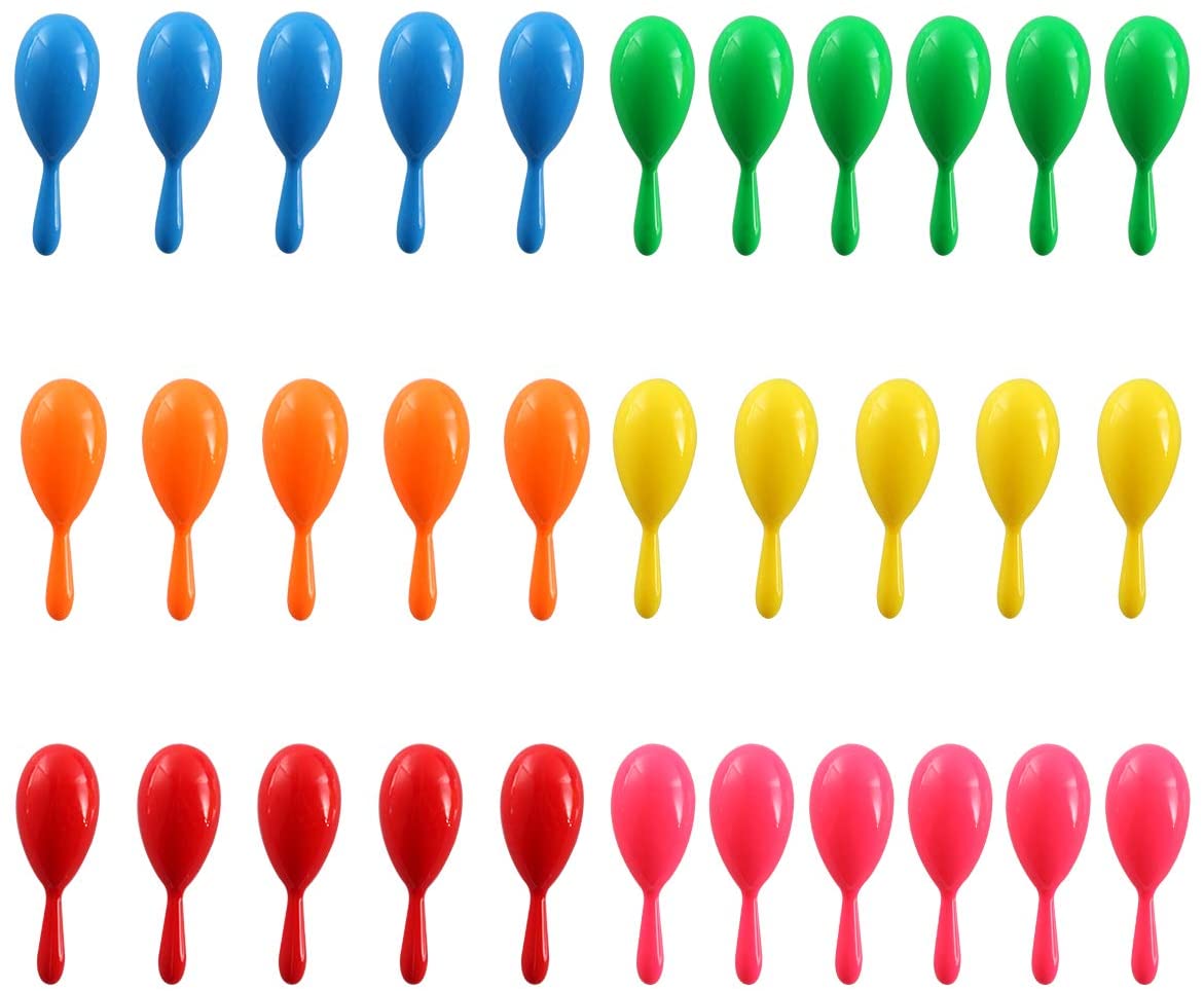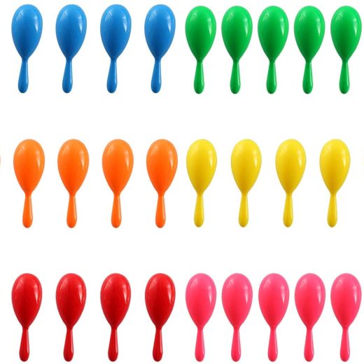 ULTRA SAFE The plastic maracas were made of good quality plastic with some mini plastic ball, eco-friendly and harmless. Smooth surface can protect your childrens fingers from possible injuries. STURDY & DURABLE The material of hand maracas are high-quality plastic that is durable and sturdy. No need to worry about felling down. Shake toys maracas and enjoy the graceful rhythm. CUTE & COLORFUL These maracas set are in 4-inch size and in 6 bright colors, total have 32 pieces. Bright and colorful maracas instrument meet your various preferences, also a good tool for children to recognize colors. WIDELY USED The Mexican maracas are a great toy and party gaming tools. Perfect for parties, mexican fiesta decorations, Cinco de Mayo, fiesta party decorations. Promotional gifts and giveaways for birthday celebrations, and holiday gatherings. 18-MONTH WARRANTY Unconditional 18-month warranty on this maracas for kid. Package: 32pcs x 4 kid maracas Color: Blue Green Red Orange Pink Yellow