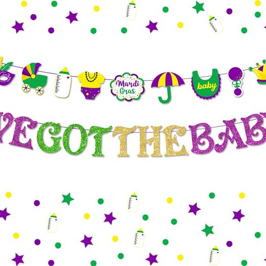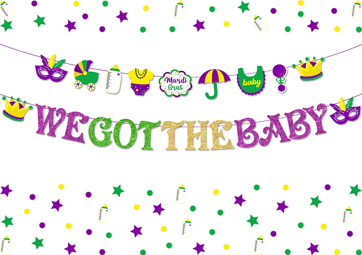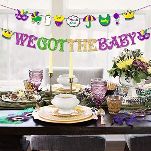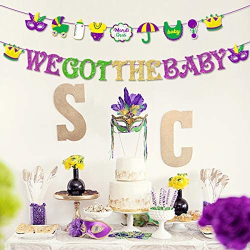 Mardi Gras Decorations Baby Shower Garland Kit, We Got The Baby Bunting Banner for Masquerade Party Supplies