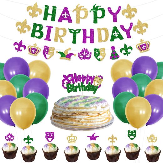 Mardi Gras Party Decorations Kit, Fat Tuesday Birthday Party Supplies, Mardi Gras Glitter Banners Party Set, New Orleans Mardi Gras Party Favor Ideas