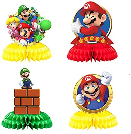 Package Includes: 7 pcs mario honeycomb centerpieces. 1 dispensing. How to use: Tear off the sticker on the back, then unfold the honeycomb ball and paste it, and do the same on the other side. Mario honeycomb decorations perfect for mario birthday party, table topper, deskdrop decorations, mario fans party, photo props background, baby shower, kids party, home party