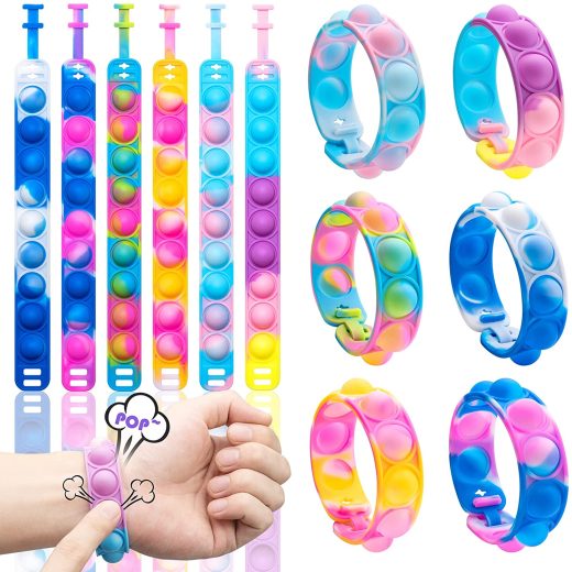 Marleysio Pop Bracelet It Fidget Toys, Push Pop Bracelet 12 Pack Fidget Bracelet Its Adjustable Anxiety Stress Relief Wristband Party Favors for Kids and Adults