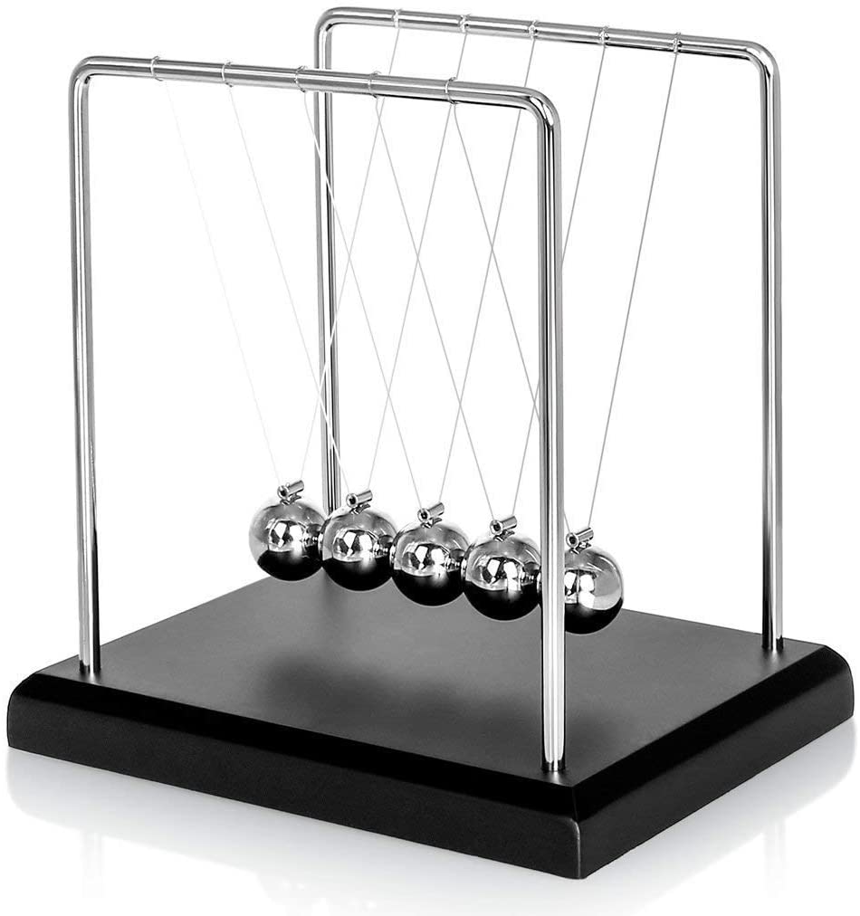 MarsGeek Classic Newtons Cradle Balance Balls with Metal Ball and Black Wooden Base Physics Teaching Tools Gift Toy Desk Decoration