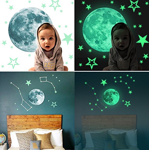 Marsway Kids Removable Moon Stars Glow in The Dark Sticker Night Luminous Room Wall Decal Stickers
