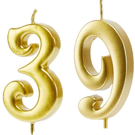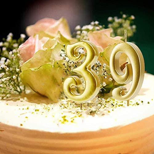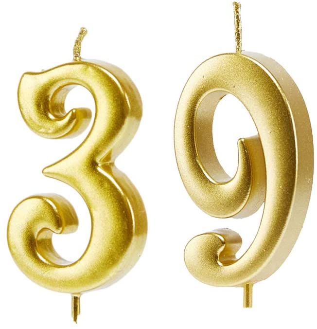 Mart 39th Birthday Candles,Gold Number 39 Cake Topper for Birthday Decorations