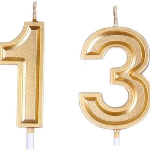 Mart Gold 13th Birthday Candles, Number 13 Cake Topper for Birthday Decorations