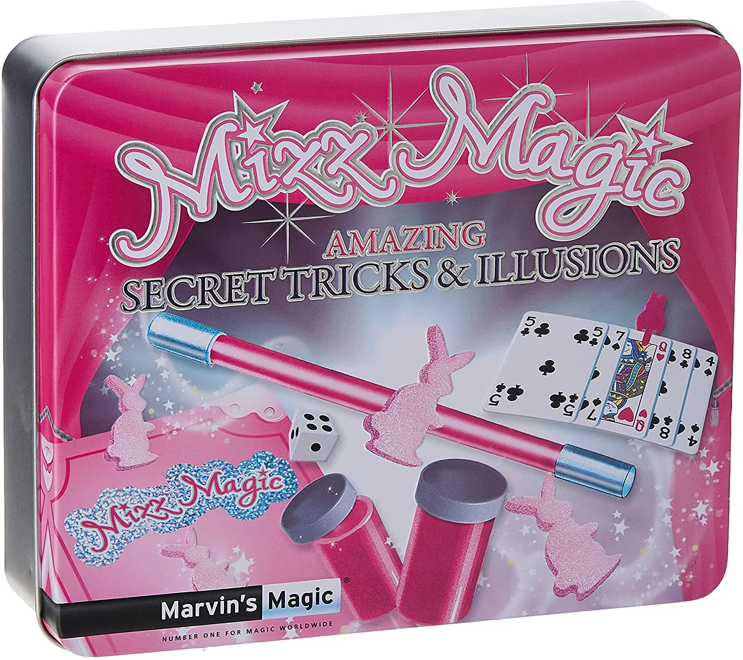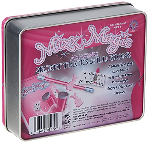 Marvins Magic – Mizz Magic Magic Gift Tin – Girls Magic Set – Magic Tricks for Kids – Includes Mind Reading Canisters, Magic Changing Cards, Mysterious Cat Clip, Incredible Spiked Coin & More