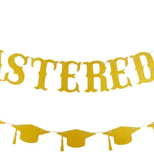 What you will get: 1Pcs gold glitter mastered it banner, 1pcs gold glitter graduation cap banner, perfect for 2021 graduation party decorations. Gr…