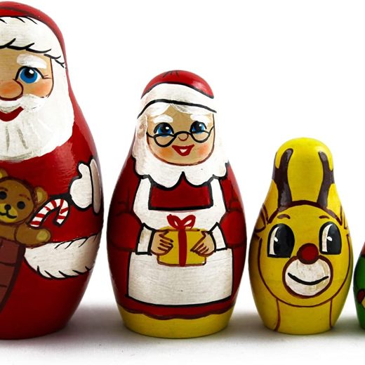 Matryoshka Matrioska Babuska Russian Nesting Wooden Doll Christmas Story Santa Claus Babooshka 5 Pc Stacking Hand Painting Beautiful Nested Matriosjka Matreoska Matreshka Matrjoska Matroeska