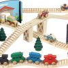 100-Piece Train Track Town Starter Set Bulk Value Wooden Set with 34 Track Pieces, 12 Cars & Trains, 15 People/Signs, & 39 Trees/Houses