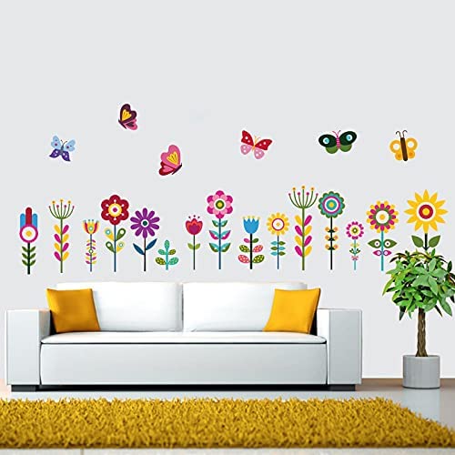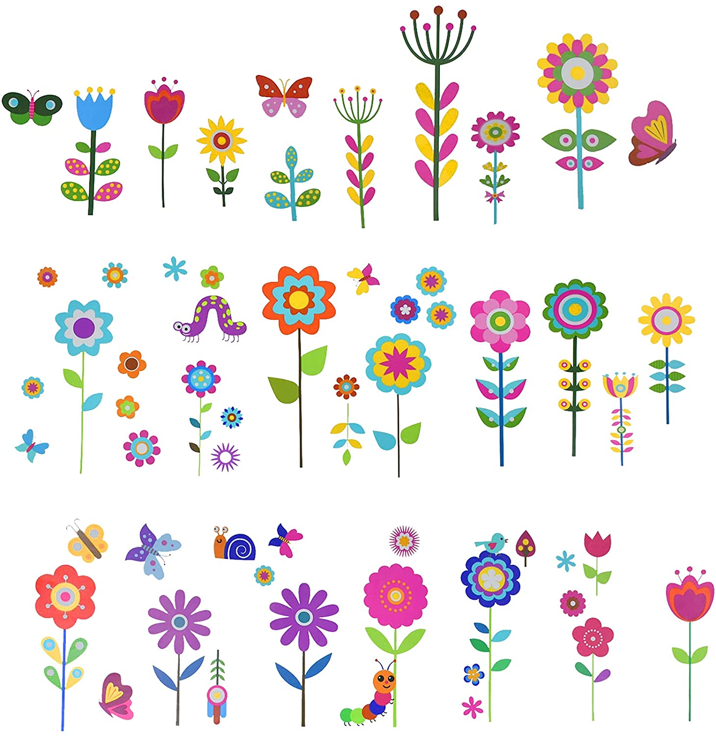Maydahui 56 Pieces Garden Flower Wall Corner Decal Snail Butterfly Caterpillar Bird Snake Sunflower Grass Floral Baseboard Wall Sticker for Kids Girls Room Bedroom Nursery Classroom Home Decoration