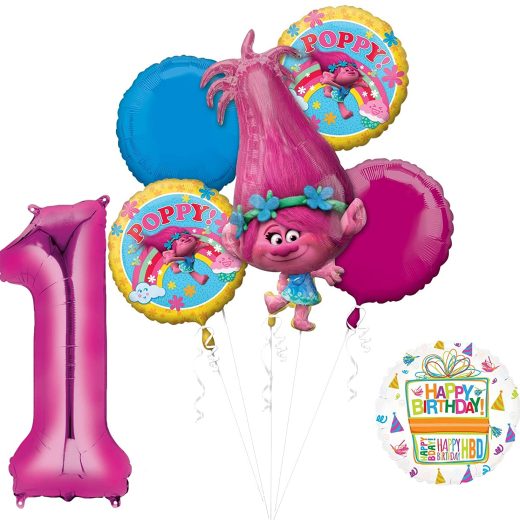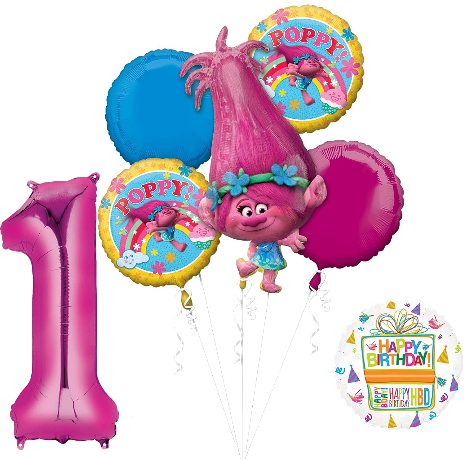 Mayflower Products New Trolls Poppy 1st Birthday Party Supplies and Balloon Bouquet Decorations