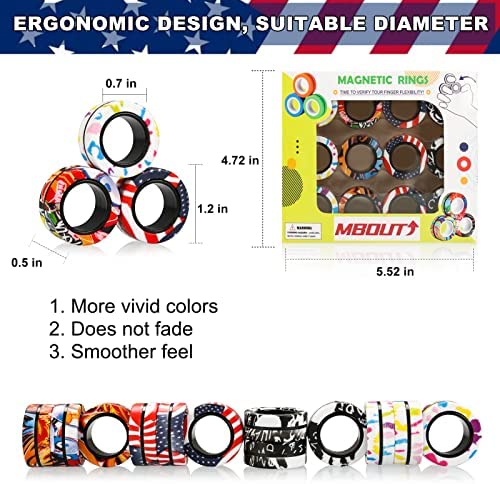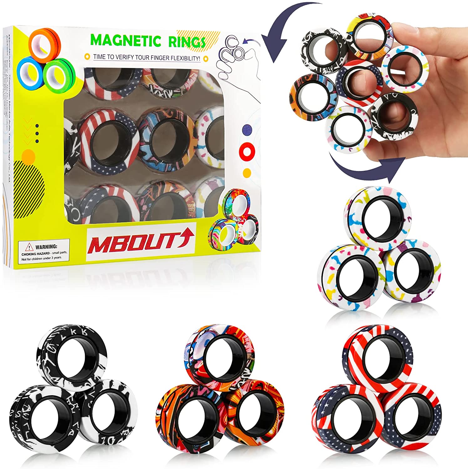 MBOUTrising 12Pcs Magnetic Rings Fidget Toys Pack, Magnets Finger Rings for ADHD Stress Relief, Colorful Magical Fidget Rings for Training Autism A…