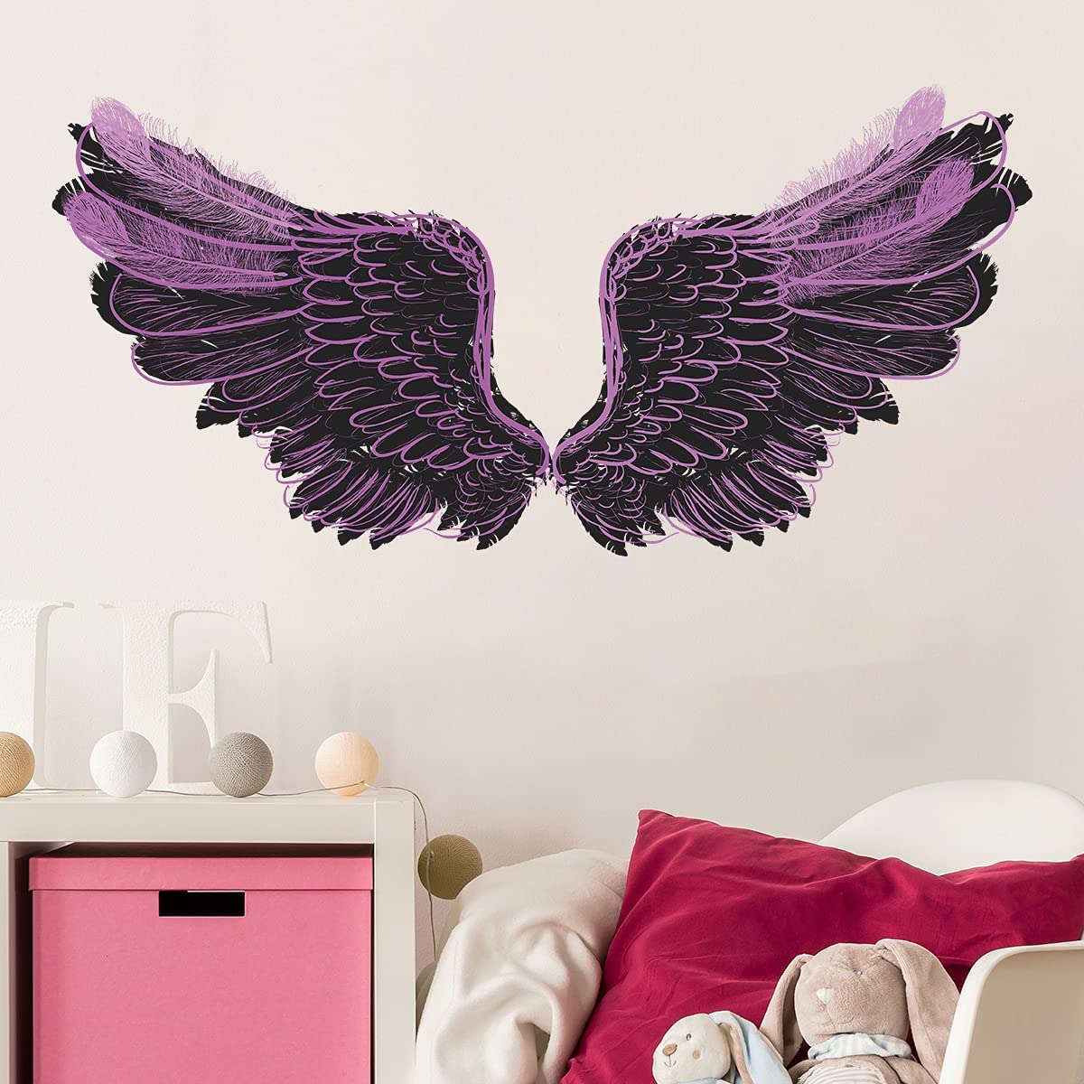 MEFOSS Purple Angle Wings Decals for Wall Large Wings Wall Decor Stickers Peel and Stick Vinyl Decals Art Mural for Living Room Kids Bedroom Playroom Wall Decorations
