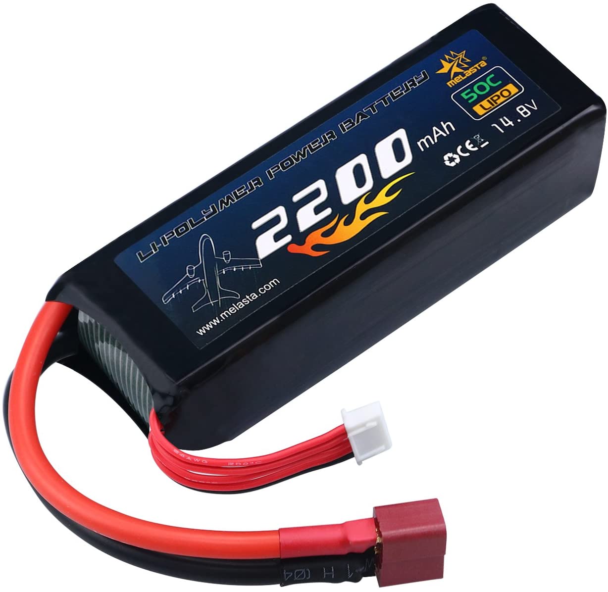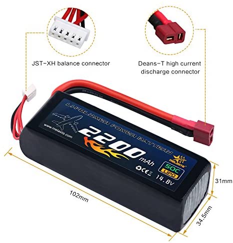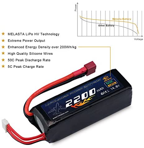 melasta 14.8V 2200mAh 50C 4S RC LiPo Battery Pack with Deans-T Plug for RC Airplane Helicopter Quadcopter Vehicle Boat [UL and Ce Certificated]