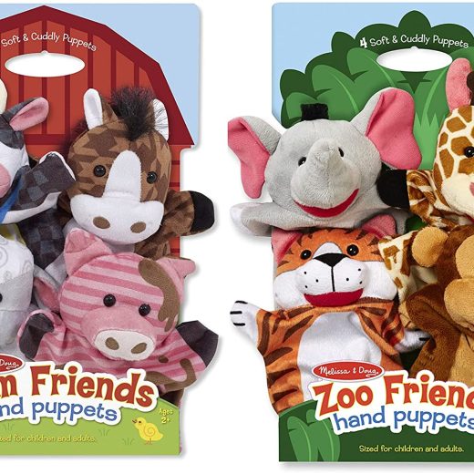 Melissa & Doug Animal Hand Puppets (Set of 2, 4 animals in each) – Zoo Friends and Farm Friends